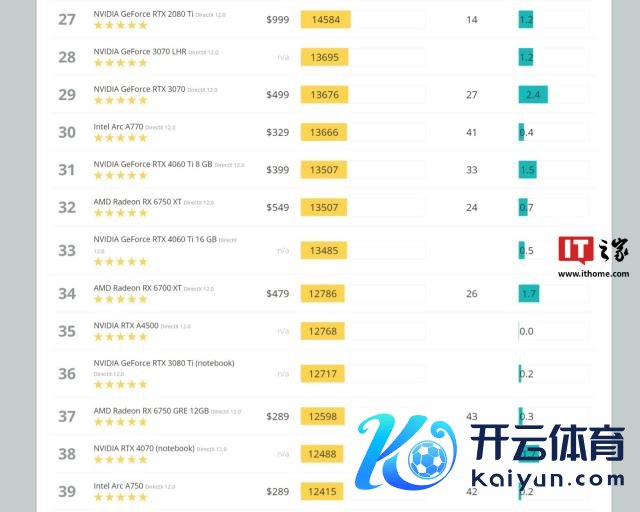 字据 IT 之家的查询对比,13821 的分数在迁徙端明显强于 RTX 3080 Ti(12717 分)和 RTX 4070(12488 分),同期还高于桌面端的 RTX 3070(13676 分)和 RTX 4060 Ti(8GB 款 13507 分、16GB 款 13485 分)。
