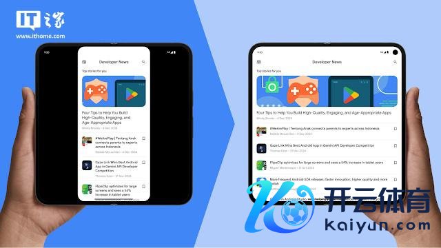 跟着 Android 16 和 Android 17 的更新,预测智高东说念主机品牌和第三方应用开采者将推出在可折叠手机和平板电脑上推崇更佳的应用。优化后的应用不管在横向也曾纵向模式下齐能精良清爽kaiyun官方网站,并能在分屏多任务、全屏或窗口模式下更好地运行。